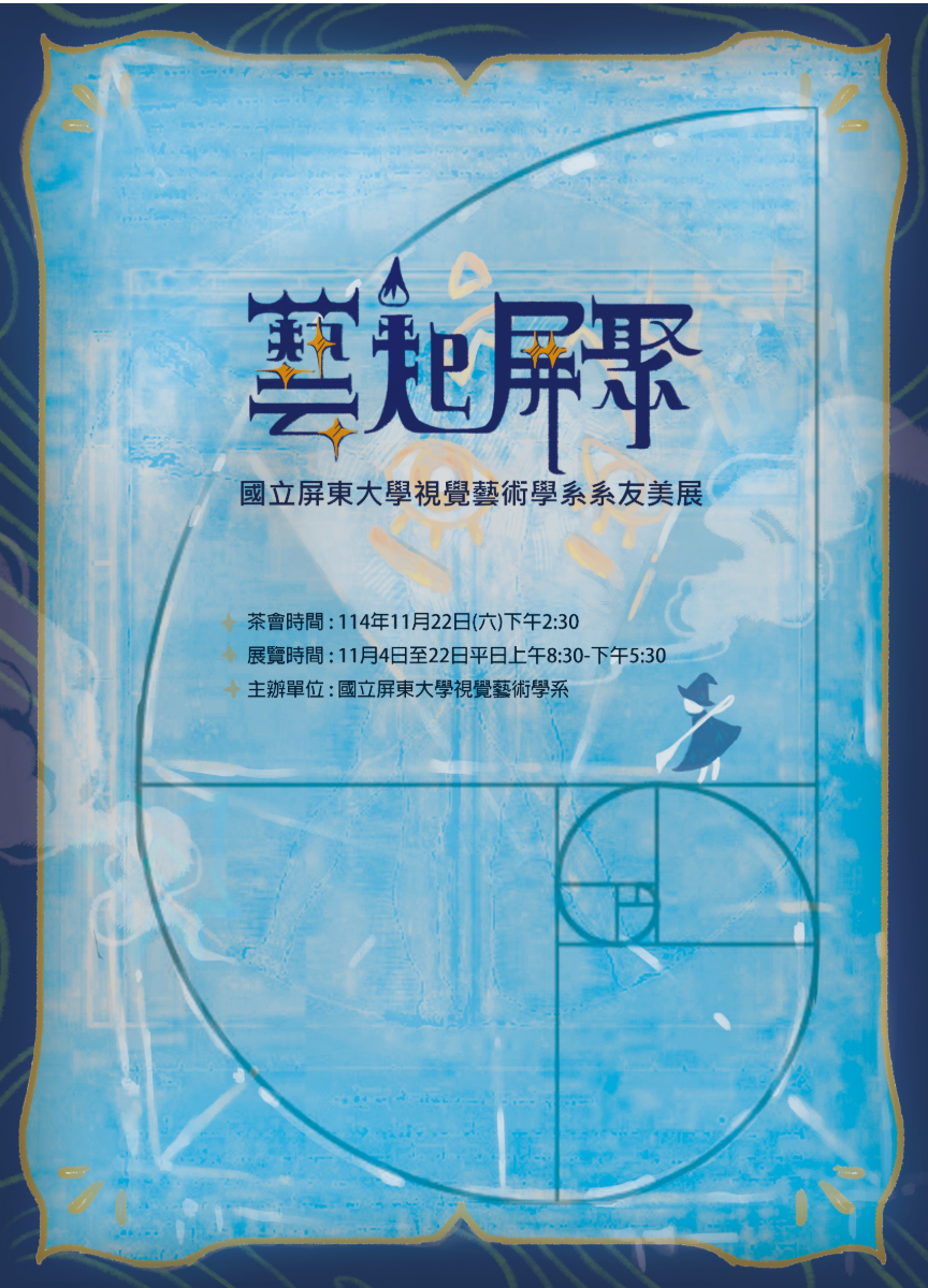 為展現藝術教育的深厚成果與代代傳承的創作能量,國立屏東大學視覺藝術學系碩士班特別舉辦系友美展《藝起屏聚》,邀請歷屆畢業糸友回到母校,以藝術為橋梁,再次相聚屏東,傑出系友教育部部長一鄭英耀、版畫大師—陳國展、水墨大師—黃光男與曾獲世界傑出百人藝術家獎一何文杞等名家皆參與其中,諸位傑出系友呈現各自於創作路上的精采篇章,值得各位一探究竟。