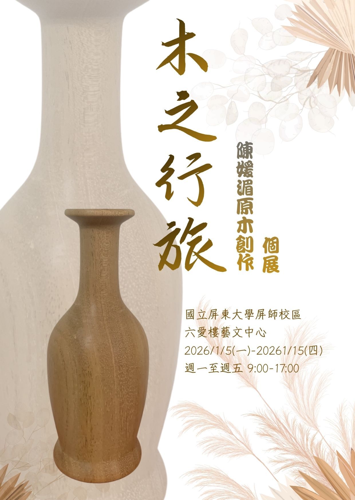 【展覽】木之行旅-原木創作研究-陳媛湄口考展-115年1月5日至同年月15日